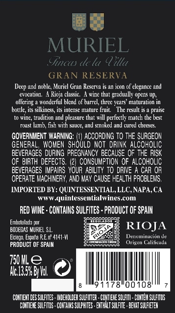 Muriel Gran Reserva – Back Label – Non-Vintage