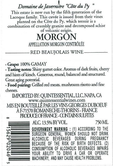 The vineyards are owned by the Lacoque family, who have farmed this land for many years and have a long-standing relationship with Les Vins Georges Duboeuf.