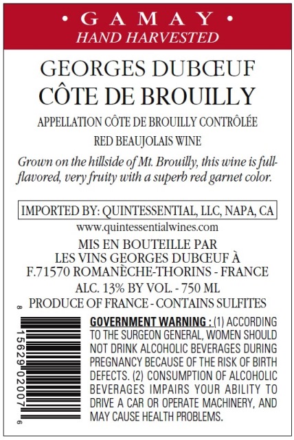 Georges Duboeuf Côte-de-Brouilly – Back Label – Non-Vintage