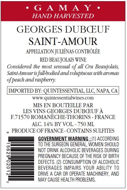 Considered the most sensual of all Cru Beaujolais, the Flower Label Saint-Amour is full-bodied and voluptuous with a shiny garnet color. Impressive aromatic complexity, with aromas of fruit, spices, and a hint of pepper. Light-bodied and elegant, with a superb balance. Harmonious and fresh, Saint-Amour has a seductive silky finish and notes of peach on the palate.