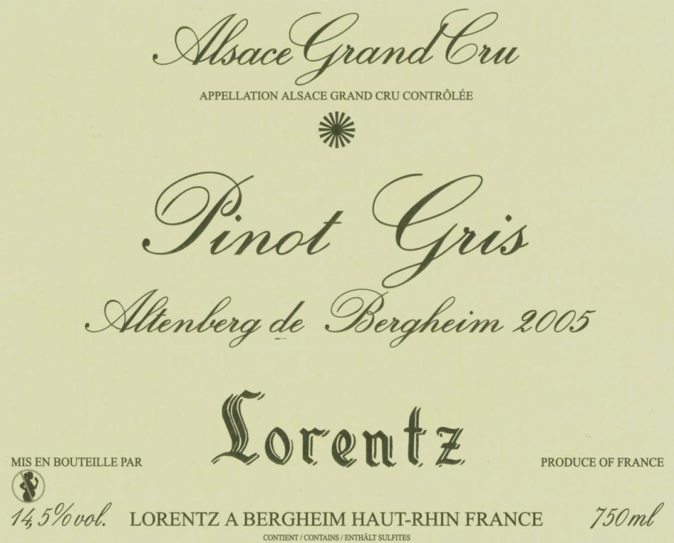 Gustave Lorentz Pinot Gris Grand Cru Altenberg de Bergheim – Front Label – Non-Vintage