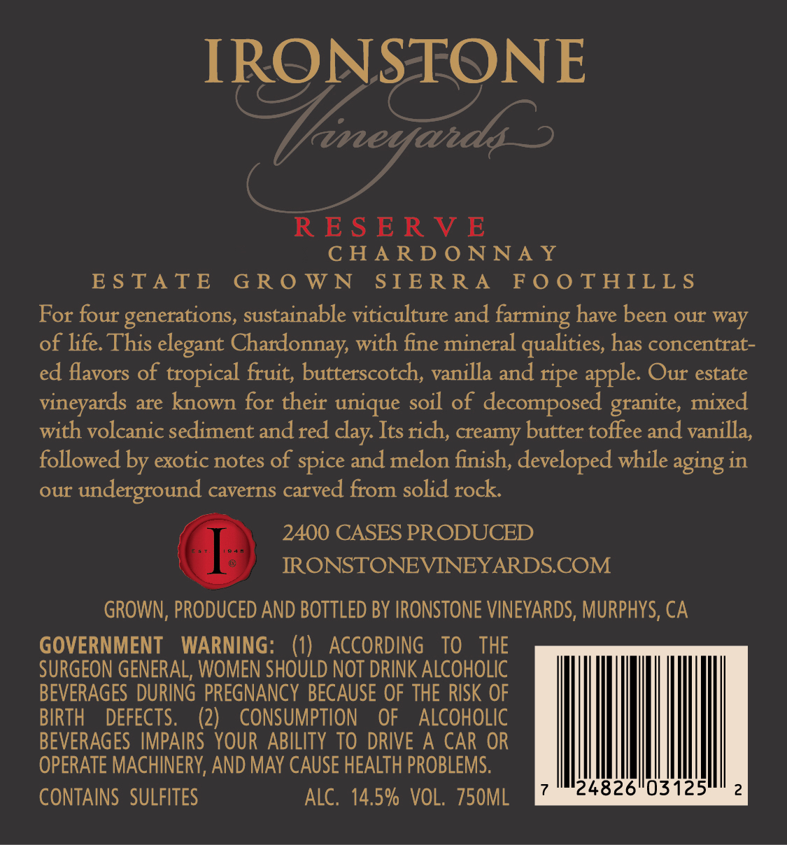 Ironstone Reserve Chardonnay – Back Label – Non-Vintage