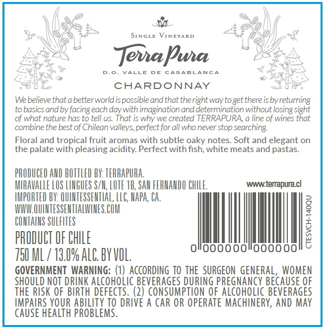 TerraPura Reserva Chardonnay – Back Label – Non-Vintage