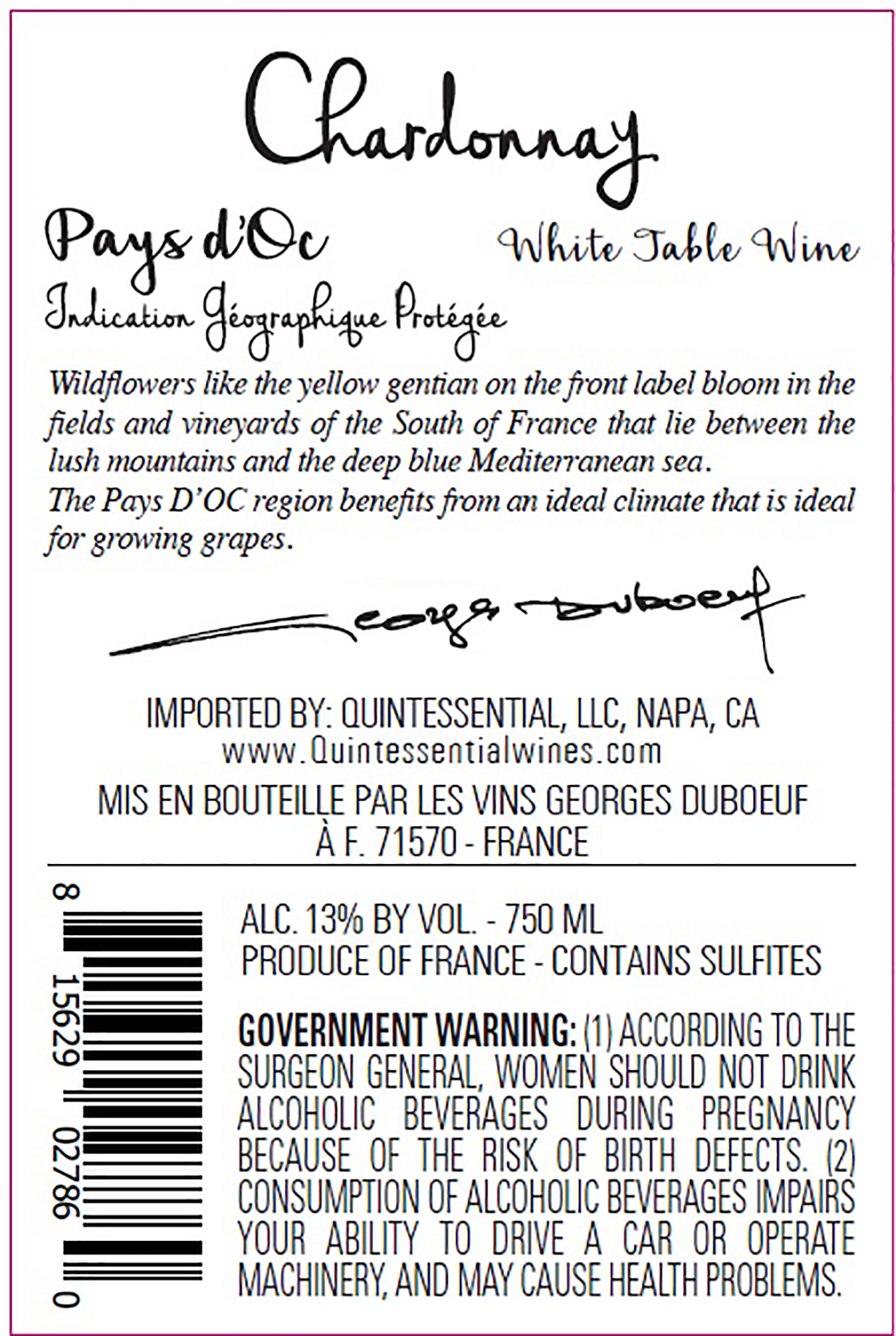 Georges Duboeuf IGP Pays d’Oc Chardonnay – Back Label – Non-Vintage